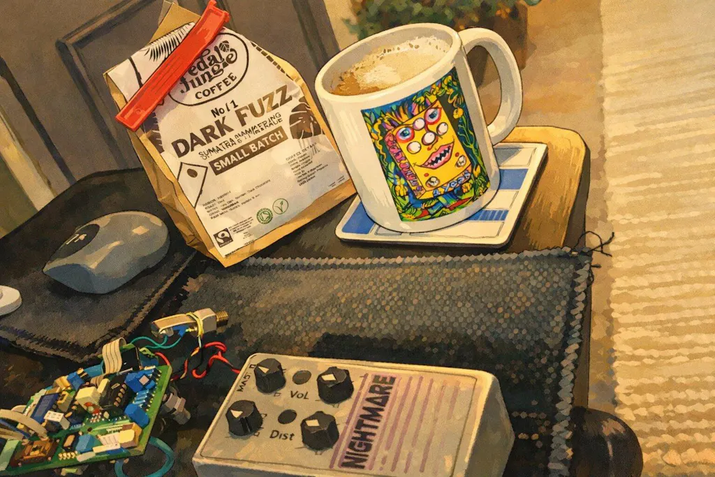 The coffee is super flavourful and I love the t shirt as well! I am a Jazz guitarist but love to practice with dome Dark Fuzz!